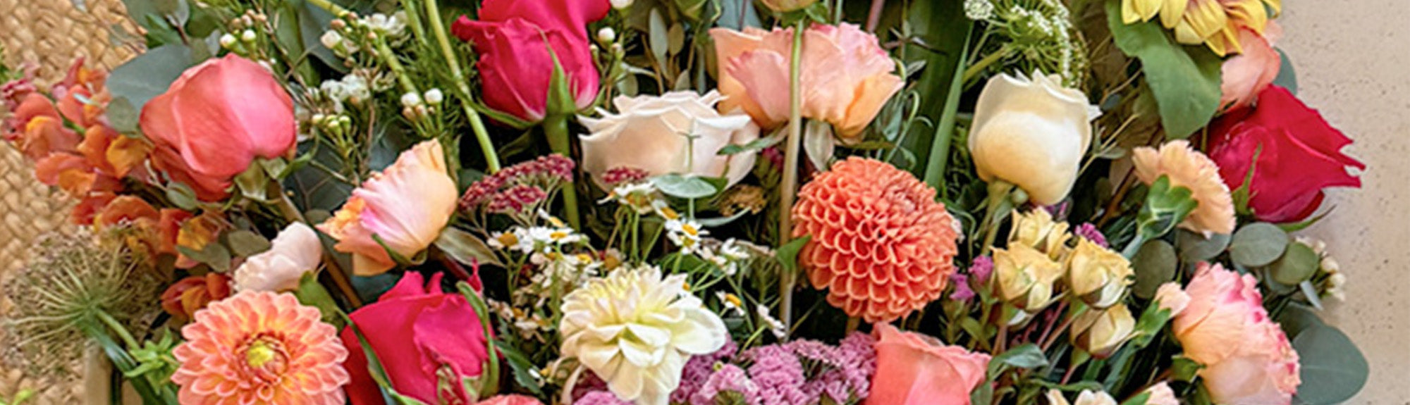 The contents of our bouquets evolve with the seasons, as we use only fresh local flowers (or flowers that have been driven and not flown in). The bouquet you get might not be exactly as pictured, but we guarantee it will be stunning and charmingly packaged, as we pick the best in season.